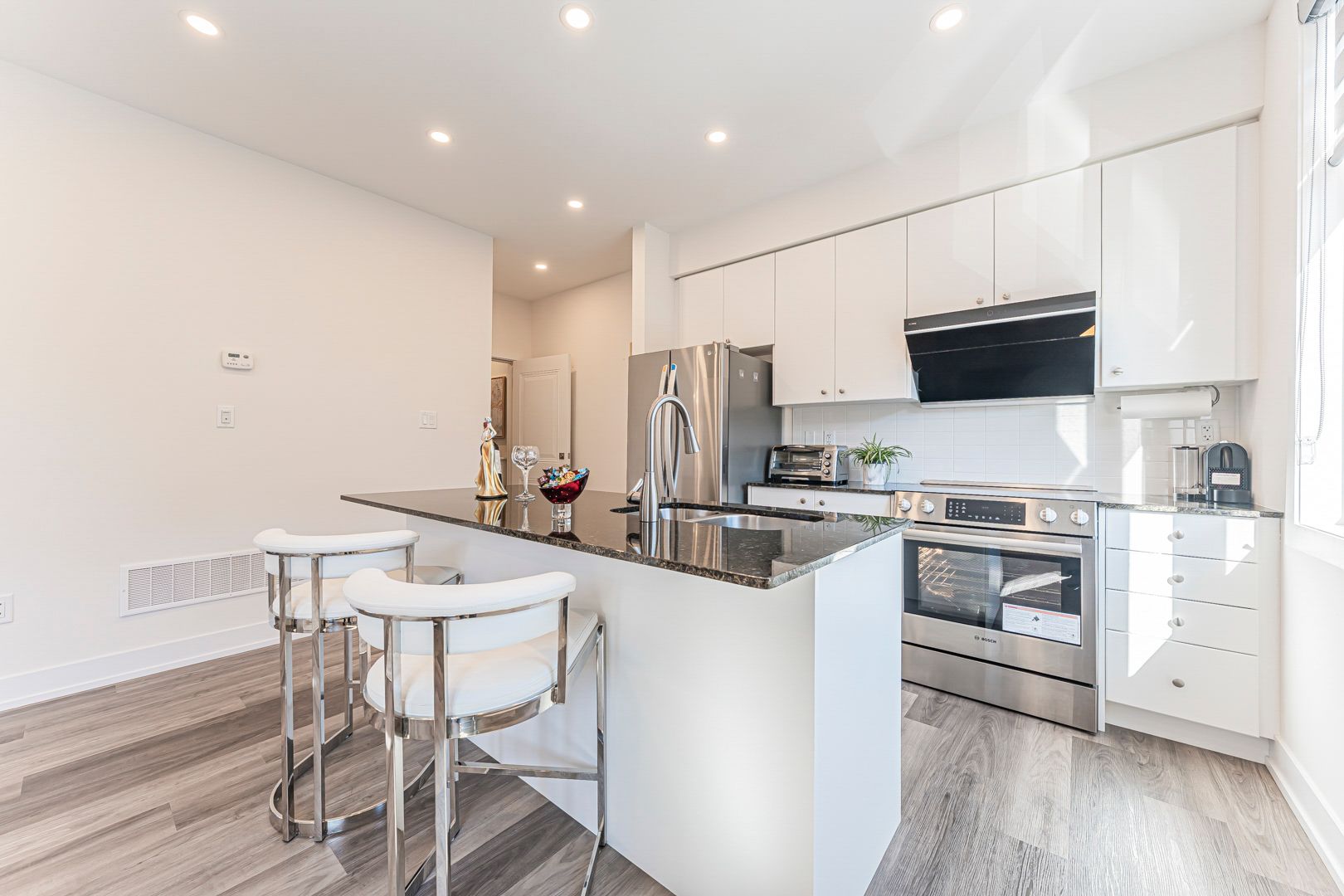 Step inside to a chef-inspired kitchen that will delight any culinary enthusiast, showcasing sleek quartz countertops, premium stainless steel appliances including a 2023 Bosch stove, 2023 LG fridge, and 2023 Fotile range hood, plus ample cabinetry. Experience thoughtful upgrades throughout, from modern toilets and enhanced shower heads in all bathrooms to a beautifully restyled staircase adding both elegance and function. Upstairs, the spacious primary suite offers a private ensuite and generous walk-in closet, while the additional bedrooms provide flexibility for family, guests, or (Note: MAX_TOKENS) a dedicated home office. An extended garage with newly installed shelving ensures extra storage