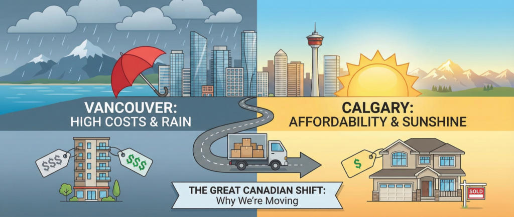 Across Canada, the conversation around affordability and lifestyle has never been louder and one of the most talked‑about migration shifts involves British Columbians heading east to Alberta. In 2025, the trend gained even more momentum, with an estimated 70,000 people leaving British Columbia, many bound for Calgary. So, what’s driving this west‑to‑east migration? Let’s break down the main factors.